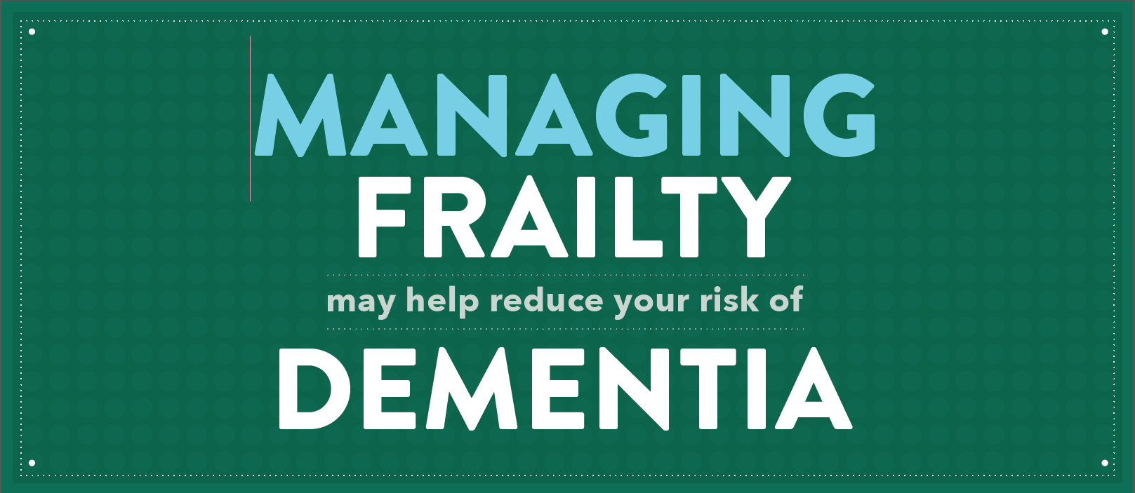 As our population ages, the number of people with dementia is increasing rapidly. Alzheimer’s disease is the most common cause of dementia (syndrome of memory and functional impairment). Treating frailty may better support patients, families, and aid in health care delivery.